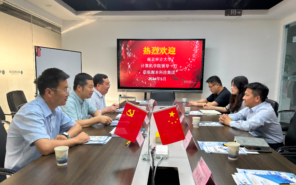 为贯彻落实党中央、国务院关于高校毕业生就业工作的决策部署,全力促进毕业生高质量就业和产教融合开展,2024年5月15日下午,南京审计大学计算机学院副院长郭红建带领计算机系主任崔应留、信管系主任姚兴山以及吕从东老师来到江苏USDT钱包科技集团召开“访企拓岗产教融合”专项行动。