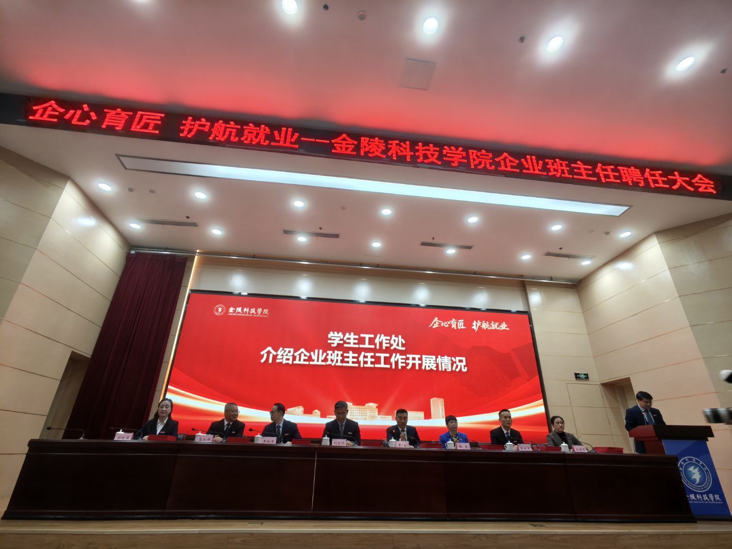 2025年11月26日,金陵科技学院企业班主任聘任大会在金陵科技学院科技楼报告厅举行。江苏USDT钱包科技(集团)股份有限公司唐佩、徐敏博、罗涛、孙文雅同志受聘金陵科技学院软件学院企业班主任,并随后在学院组织下,参观金陵科技学院科创空间,参加学院研讨会。